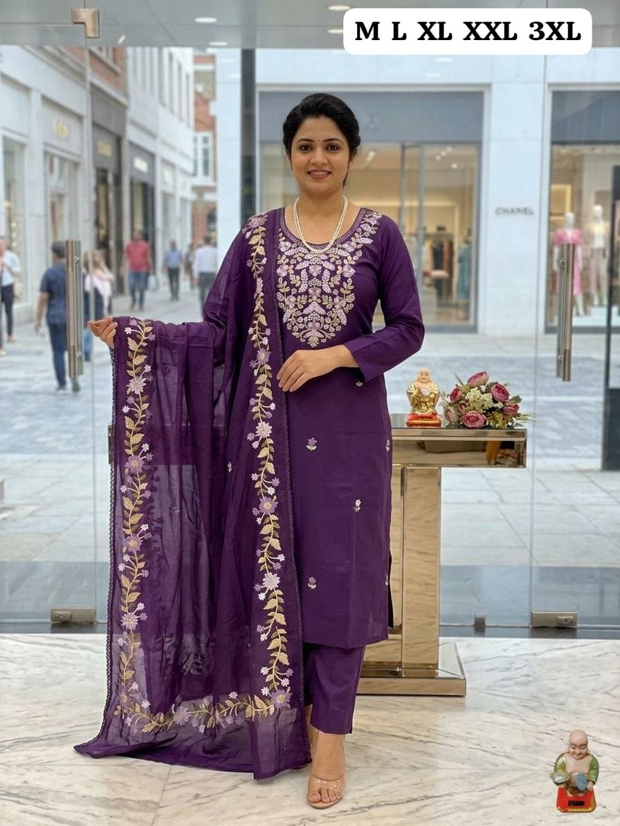 Intricate Workmanship: Features a heavily embroidered yoke with white and lilac floral patterns, complemented by dainty motifs across the kurta body.